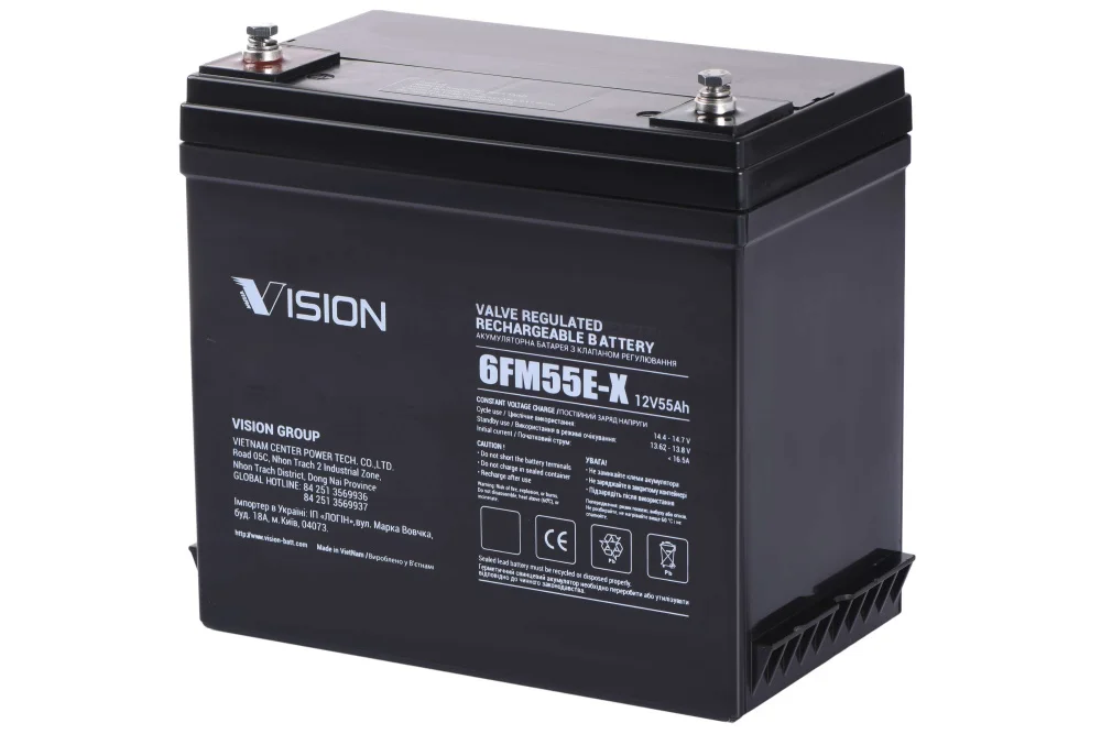 Аккумуляторная батарея Vision AGM FM 12В 55А/ч — надёжное решение для резервного питания