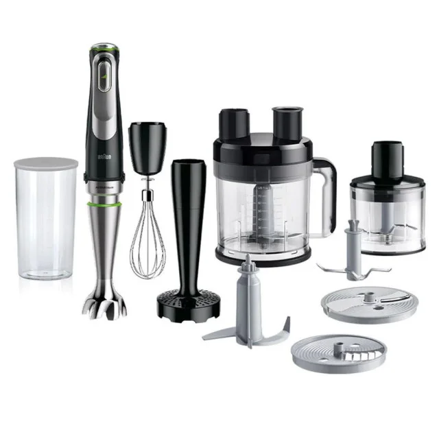 Этот мощный и многофункциональный прибор станет вашим верным спутником в создании кулинарных шедевров, экономя ваше время и силы. Материал корпуса – прочный пластик, а ножка блендера выполнена из нержавеющей стали для долговечности и гигиеничности. Сочетание черного и серого цветов делает блендер элегантным дополнением к любому интерьеру кухни.