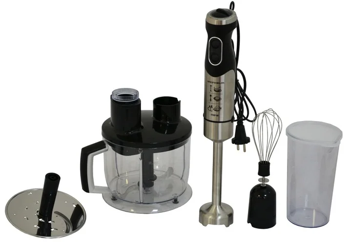 Блендер, венчик, дисковый нож, емкость для измельчения, стакан с крышкой, толкатель.