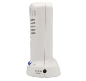 это бесконтактный анализатор качества воздуха. Представленный прибор помогает выявить концентрации опасных микрочастиц и вредных для здоровья газов в воздухе. Дополнительно, детектор представленной модели определяет температуру воздуха и относительную влажность. Имеет широкое применения в офисных помещениях, жилых зданиях, отелях, зонах массового пребывания людей. Принцип работы основан на методе лазерной фотометрии. При опасном содержание микрочастиц срабатывает звуковое оповещение.
