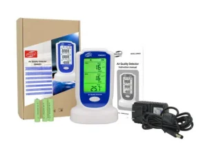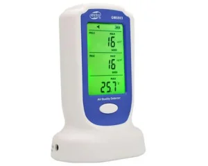 Детектор качества воздуха Benetech GM8803 выполнен в эргономичной форме и обладает большим контрастным дизайном. Работает от трех пальчиковых батареек ААА (входят в комплектацию вместе с блоком питания от сети). Прибор оборудован индикацией низкого заряда батареи. Допустимая рабоая температура составляет от 0 до +50 °C. Общий вес составляет 0,152 кг. Габариты 135х92х65 мм.