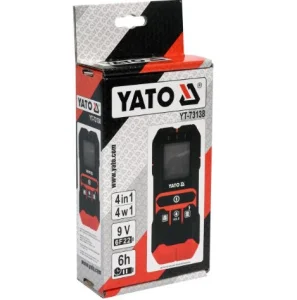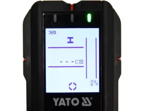Детектор цифровой YATO (YT-73138) обладает габаритами 20х7,7х2 см, вес всего 0,13 кг. Применение данного датчика в разы ускоряет выполняемую работу и сводит к минимальным потерям повреждение электрических и гидравлических установок под штукатуркой. Рабочий диапазон температур составляет 0-50 °C, температура хранения прибора: от -10 до +60 °C. Конструкция выполнена из прочного пластика. Нижняя сторона корпуса оборудована мягкими вставками для защиты от царапин.