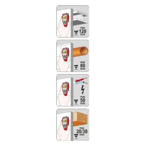 относится к профессионального типа приборов, применяемых для обнаружения в стенах и гипсокартонных конструкциях проводов, металлов, труб, древесины, а также для измерения влажности в строительных материалах. Среди прочих особенностей стоит выделить наиболее важные: дисплей со светодиодной подсветкой, позволяющий отслеживать выбраную функцию, силу сигнала, расстояние искомого материала в сантиметрах, а также центральном расположении по отношению к прибору. Присутствуют звуковые и сигнальные диодные определители.
