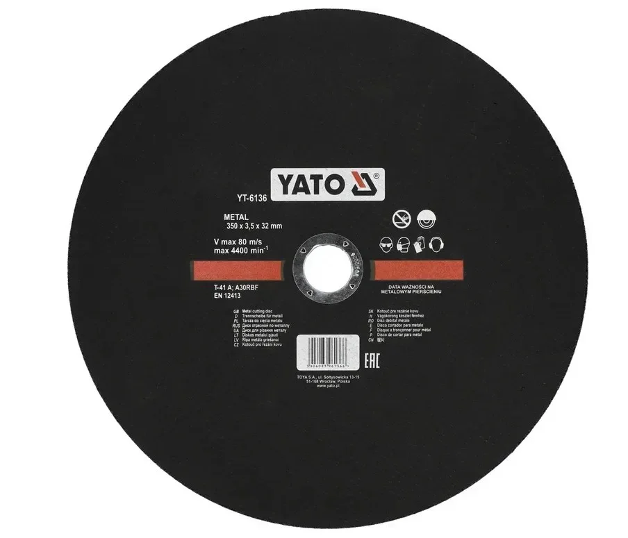 Часто задаваемые вопросы про Диск отрезной по металлу Yato 350x32мм h3,5мм (YT-6136):