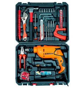 Комплектация дополнена ручным инструментом из 30 элементов. Высокое качество сборки и каждого элемента гарантирует длительную эксплуатацию дрели. Для транспортировки в наличии имеется кейс.