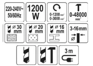 Максимальный диаметр сверления составляет 30 мм в дереве, 20 мм в бетоне и 16 мм в металле, что делает YT-82045 универсальным инструментом для широкого спектра задач. Вес дрели составляет 3,4 кг, что обеспечивает оптимальный баланс между мощностью и удобством использования.