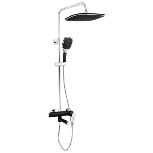 Смеситель, кронштейн для верхнего душа, лейка для верхнего душа, кронштейн для ручного душа, лейка для ручного душа, душевой шланг, душевая стойка, крепежи, фум лента, инструкция.