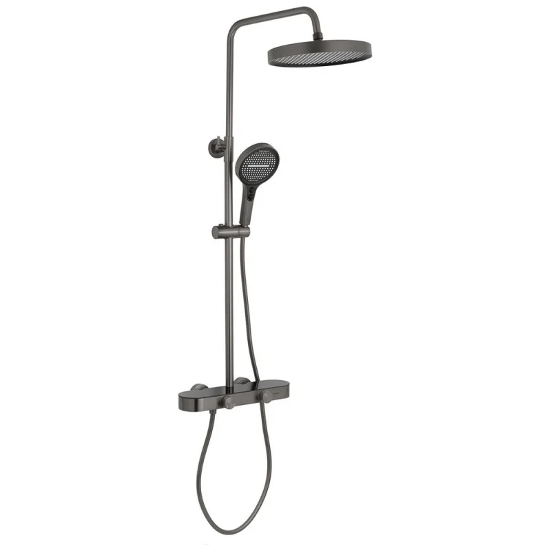 Смеситель, кронштейн для верхнего душа, лейка для верхнего душа, кронштейн для ручного душа, лейка для ручного душа, душевой шланг, крепежи, инструкция.