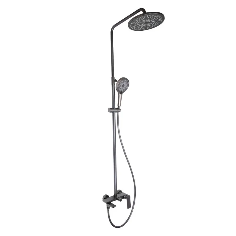 - В комплект входят верхний душ диаметром 255 мм, ручной душ круглой формы с тремя режимами переключения и смеситель с поворотным изливом, что делает систему универсальной и подходящей для различных сценариев эксплуатации.