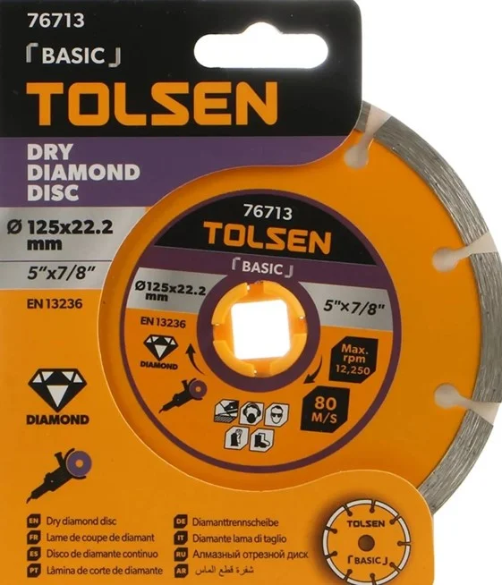 Часто задаваемые вопросы про Диск алмазный Tolsen Basic 125×22,2х7мм (76713):