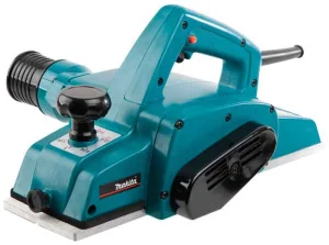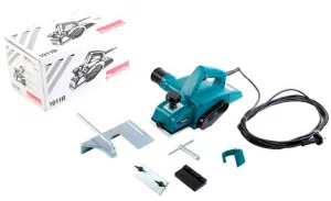 Электрорубанок MAKITA 1911B владеет двигателем 840 Вт. Который раскручивает барабан до 16000 об./мин. С максимальной шириной обработки 110 мм. И глубины обработки до 2 мм. А вес составляет 4.3 кг.