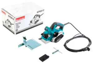 Электрорубанок MAKITA KP0810 оснащен двигателем мощностью 850 Вт. И максимальная скорость вращения 16000 об/мин. Возможность максимальной ширины обработки 82 мм. А глубина 4 мм. И максимальная глубина выборки четверти 25 мм. Вес составляет 3.3 кг. А длина кабеля 2.5 м.