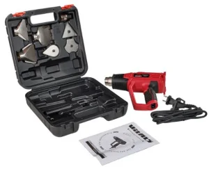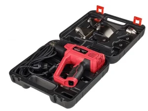 это удобный в применении вспомогательный инструмент для выполнения ремонтно-монтажных терморабот с использованием регулируемой подачи горячего потока воздуха. При помощи данного инвентаря намного проще и удобнее выполнить снятие краски, лаков, шпаклевки, проводить герметизацию термоусадочной пленкой, пайку, придавать форму пластиковым изделиям, проводить разъем резьбовых соединений.