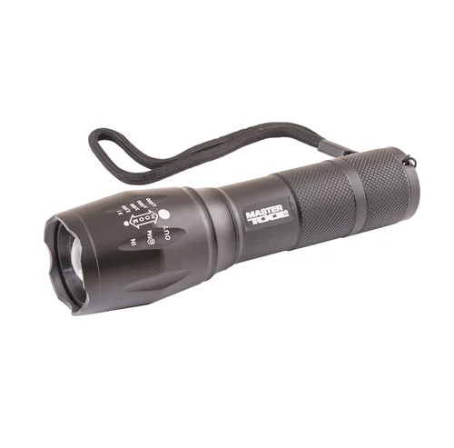 Яркий светодиод мощностью 10W, технология CREE XM-L T6 LED; 5 режимов работы яркости света: 100%, 50%, 30%, "стробоскоп", "SOS"; имеет регулировку фокуса; корпус изготовлен из анодированного алюминия; тип питания: 3 батарейки AAA или 1 аккумулятор 18650