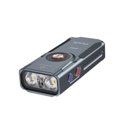Светодиодный фонарь 3 в 1 со встроенным магнитом; цвет – серый; тип излучателей – 2 х Luminus SST12, 1 х Luminus SST-08-UV, красный лазер класса 1; цветовая температура света – 6500К; max яркость – 700 лм; max дальность луча – 110 м; автономность – до 60 ч работы на одном заряде; мощность лазера – ≤ 0,39 мВт; 10 режимов работы, включая мигающие режимы красного / синего цвета; гибкая настройка света с помощью 3 переключателей; источник питания – встроенный аккумулятор 750 мАч; зарядка через порт USB-C; цельнометаллический корпус с анодированием; герметичность – IP66; ударопрочность – 1 м; размеры – 69 х 29 х 16 мм