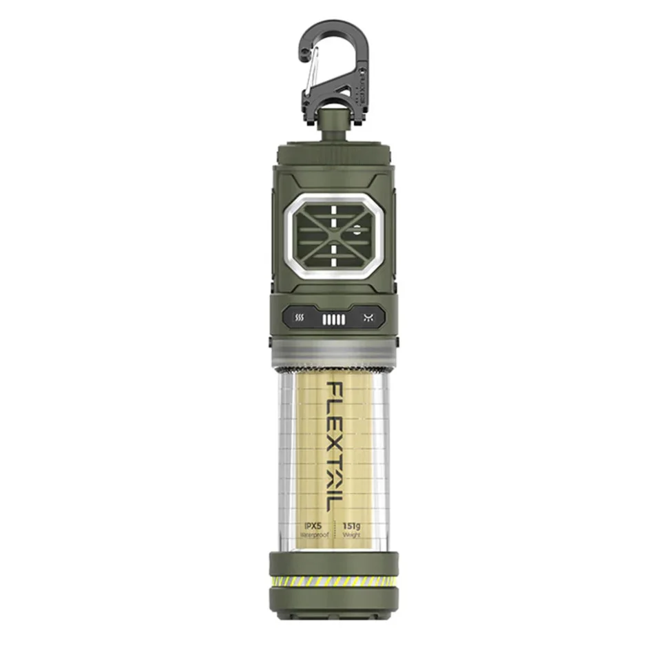 Фумигатор-фонарь Flextail 2 в 1 для отпугивания насекомых и освещения во время отдыха на природе, в домашних условиях; источник питания – встроенный аккумулятор 17,5 Вт·ч; зарядка через порт USB-C; мощность зарядки – 10 Вт; 3 режима отпугивания насекомых с радиусом действия 3 м/6 м/12 м; max время работы в режиме фумигатора – 20 час; 3 варианта освещения яркостью 50 лм/200 лм/400 лм; время работы в режиме света – 10-40 часов в зависимости от режима; размеры – 36 х 36 х 144 мм; Совместимы со стандартными репеллентными пластинами, размером 35 х 22 х 2,7 мм.