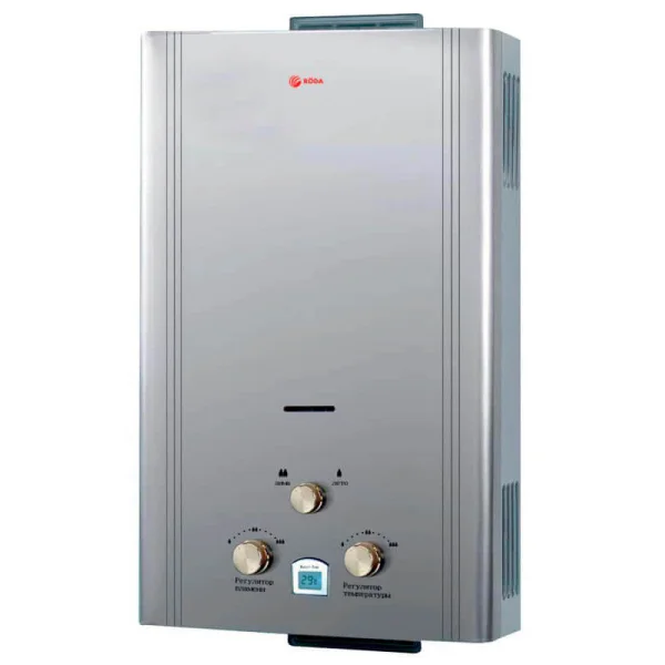 Газовая колонка Roda JSD20-A6 - современный настенный проточный водонагреватель атмосферного типа, мощностью 20 кВт, предназначенный для быстрого нагрева воды для бытовых нужд. Производительность колонки составляет 10 литров горячей воды в минуту при ΔТ=25°C, что обеспечивает комфортное использование для 2–3 человек. Устройство оборудовано медным теплообменником с жаропрочным покрытием, обеспечивающим долговечность и устойчивость к коррозии при интенсивной эксплуатации. Колонка оснащена открытой камерой сгорания и естественной тягой, а управление осуществляется механически. Электронный автоматический розжиг активируется при открытии крана горячей воды, что делает эксплуатацию удобной и экономичной: газ расходуется только в момент потребления воды. Минимальное давление воды для работы составляет 0,3 бар, а расход природного газа при максимальной мощности - 2 м³/час. Диаметр дымохода - 110 мм, что обеспечивает надежное удаление продуктов сгорания. Компактные размеры устройства (590×340×140 мм) позволяют легко установить его даже в ограниченном пространстве, а вес 7,9 кг упрощает монтаж.