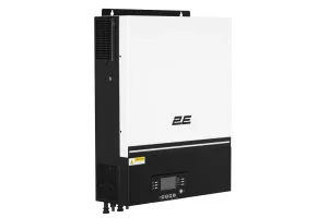 Устройство предназначено для однофазной сети и способно обеспечить питанием электроприборы суммарной мощностью 11000Вт. Выходной сигнал переменного тока имеет вид чистой синусоиды, поэтому возможно подключение любых потребителей (в том числе двигателей) соответствующей мощности. КПД инвертора составляет не менее 93%. Подключается 2E-XM-MAX-11K48T к бытовой сети напряжением 170-280В и фотоэлектрическим модулям мощностью 2х 5.500Вт. Диапазон MPPT: 90-450В пост. тока, 2MPPTх27А, макс Voc- 500В пост. тока. Так же возможно подключение к генератору. Для накопления энергии возможно подключение аккумуляторов любого типа (Carbon , Li-Ion , Li-Pol , LiFePO4, Li-TiO, OPZS, OPZV и т.п.), напряжением 48В. Максимальный ток зарядного устройства составляет 150А. Аппарат имеет функции защиты от перегрузки и короткого замыкания, а так же функцию холодного запуска. Для контроля работы и управления инвертор оборудован многофункциональным дисплеем. Возможны настройки следующих параметров: диапазон входящего напряжения, ток заряда аккумулятора, приоритет заряда АКБ – сеть/ фото модули, автоматический перезапуск после возобновления электроснабжения. Возможно подключение ПК или контролеров системы «Умный дом» через привычные разъемы USB и RS-232/485 и порт для BMS. Так же возможно удаленное управление инвертором через Wi-Fi, а с технологией Dry-contact устанавливать сценарии автоматического включения инвертора. Время переключения (на питание от АКБ) зависит от типа подключенных устройств и составляет 10мс для ПК и 20мс для бытовой техники. Мощности данного инвертора достаточно для работы небольших магазинов или кафе. Максимальная мощность кратковременно (5сек) может достигать 22000Вт, что позволяет выдерживать пусковые токи электродвигателей морозильных камер, кофе машин и т.д. Так же к особенностям автономного инвертора 2E-XM-MAX-11K48T относятся: возможность одновременной параллельной работы до 6-ти устройств, возможность запуска без внешней батареи и поддержка 3-х фазной конфигурации.