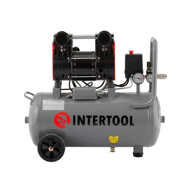 это двухцилиндровый малогабаритный компрессор массой 25кг, используется для обеспечения сжатым воздухом различных небольших пневмоинструментов с расходом воздуха до 110 л/мин в быту или на производстве. Компрессор INTERTOOL PT-0026 приводится в действие при помощи однофазного электродвигателя мощностью 1.1кВт(1.5НР), с медной обмоткой, который оборудован автоматическим пусковым конденсатором и защитами от короткого замыкания, перегрева и скачков напряжения. Электродвигатель подключается к бытовой сети с напряжением 220-230В.