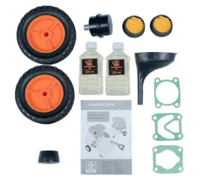 Компрессор Limex expert DC 24300-2 оборудован крепкими колесами для удобного и комфортного перемещения конструкции. Инструмент обладает расширенной комплектацией с дополнительными фильтрующими элементами.