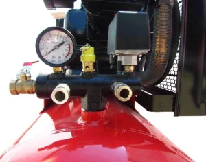 трехцилиндровый, мощностью 7500 Вт. За счет медной обмотки двигателя, инструмент обладает устойчивостью к длительным рабочим процессам. Преимуществом такого оборудования является наличие трех коннекторов для подключения шлангов. Клапан для слива конденсата позволяет избавится от лишней влаги в емкости. Производительность достаточно большая – 670 л/мин, что позволяет выполнять большие объемы работ.