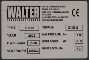 Производительность данного компрессора составляет 700 л/мин при давлении 10 бар. Компрессор изготовлен на заводе в Польше из компонентов европейского происхождения. Винтовая пара повышенной производительности и запорная арматура, клапаны и соединения — от итальянской компании vmcitaly или Camozzi. Электрические компоненты, такие как реле, автоматика и контакторы, поставляются Schneider Electric. Электрический двигатель может быть произведен в Италии, Германии или Польше в зависимости от модели компрессора.