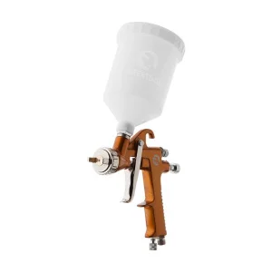 Краскопульт изготовлен по технологии НР (High Pressure). Резервуар для краски составляет 600 мл. Расход воздуха равен 130-190 мл/мин, что обеспечивает высокую эффективность работы. Диаметр форсунки — 1,5 мм. Факел распыления может быть плоским или овальным.