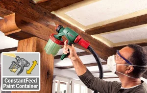 Мощная модель для бытового использования станет отличным помощником для окрашивания средних и больших площадей. Краскораспылитель Bosch PFS 3000-2 (0603207100) благодаря технологии ALLPaint равномерно наносит краску, лак, лазурь на дерево или металл, при этом не нужно менять распылитель. Также из основных особенностей нужно отметить: