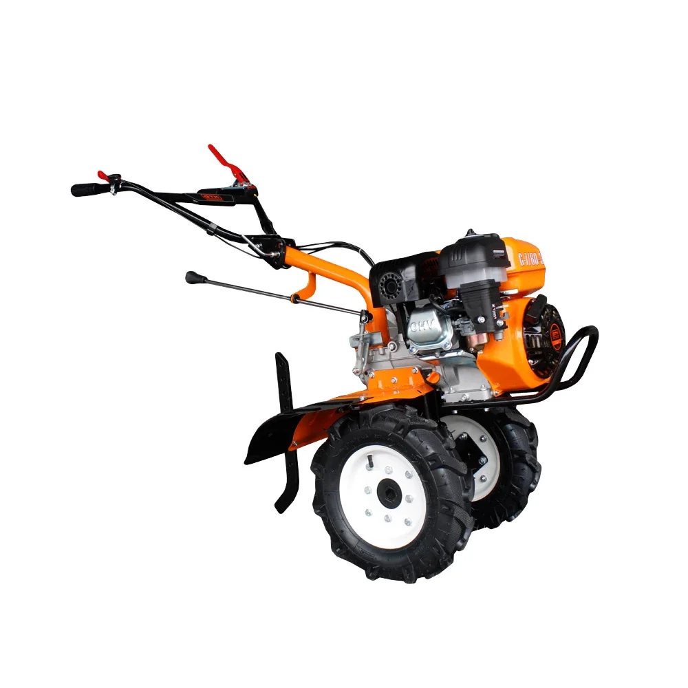 Мотоблок GTM G-7/80-3 - это практичная и надежная садовая техника бытового класса, предназначенная для обработки почвы на приусадебных участках, в садах и огородах средней площади. Модель оснащена мощным 4-тактным бензиновым двигателем мощностью 7 л.с. (5,2 кВт), который обеспечивает высокий крутящий момент и стабильную работу даже на плотной или ранее не обработанной земле. Рабочий объем двигателя составляет 212 см³, что гарантирует хорошую производительность при выполнении различных агротехнических задач. Мотоблок отлично подходит для вспашки грядок, рыхления почвы, подготовки участка к посадке и удаления сорняков. Ширина культивации регулируется в трех положениях - 350, 500 или 800 мм. Благодаря этому технику удобно использовать как на узких грядках, так и на более широких участках. Глубина обработки достигает 17 см, что позволяет качественно разрыхлять верхний слой почвы. Топливный бак объемом 3,5 литра обеспечивает длительную работу без частых остановок для дозаправки. При этом двигатель отличается экономичным расходом топлива и стабильной работой. Вес мотоблока составляет около 60 кг - это оптимальный баланс между устойчивостью при работе и удобством управления.