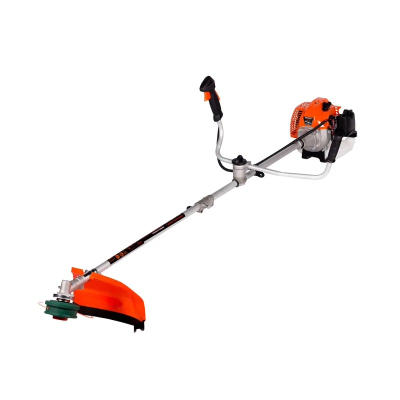 Для повышения комфорта предусмотрен наплечный ремень, который равномерно распределяет нагрузку и снижает усталость при длительном использовании. Защитный кожух предотвращает разлет травы и мусора, повышая безопасность эксплуатации. Диаметр лески 2,4 мм обеспечивает эффективное скашивание без частых замен расходного материала.