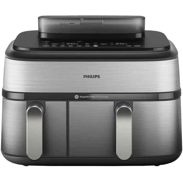 Philips Ovi Dual Steam NA555/00 — это инновационная мультипечь с пароконвекцией и двумя корзинами разного объема (3 л и 6 л), которая станет вашим надежным помощником на кухне. Благодаря запатентованной технологии Rapid Air вы сможете готовить вкусные, хрустящие и равномерно прожаренные блюда с минимальным количеством масла — до 90% меньше добавленного жира и до 40% удаления жира из продуктов.