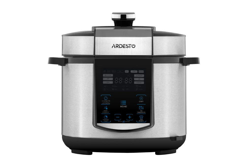 Мультиварка-скороварка Ardesto MPC-P225 — это универсальное кухонное устройство, которое объединяет в себе функции мультиварки и скороварки, позволяя готовить разнообразные блюда быстро, безопасно и с максимальным комфортом. Оснащённая сенсорным управлением и информативным дисплеем, она предлагает 22 автоматические программы, включая функцию "Мой рецепт", с возможностью индивидуальной настройки времени и температуры приготовления. Устройство поддерживает температуру до 12 часов и оснащено таймером отсрочки старта до 24 часов, что обеспечивает гибкость планирования готовки. Мощность 900 Вт и литая алюминиевая чаша объёмом 5 литров с антипригарным покрытием толщиной 2 мм обеспечивают равномерный нагрев и лёгкий уход. Для дополнительного удобства предусмотрен съёмный паровой клапан, звуковые оповещения с возможностью отключения и система защиты от перегрева. Безопасность гарантирована благодаря блокировке крышки — прибор не начнёт работу, если она установлена неправильно. В комплект входят мерный стакан, чаша, книга рецептов, шнур питания, ложка и инструкция. Стильный серебристый корпус органично вписывается в любой интерьер, а компактные размеры делают Ardesto MPC-P225 идеальным решением для современной кухни.