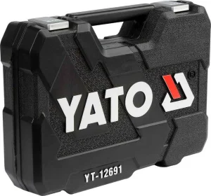 Набор инструментов YATO 82шт (YT-12691) поставляется в черном пластиковом чемодане с логотипом бренда.