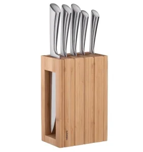 Нож поварской – 20,3 см; нож для хлеба – 20,3 см; нож для овощей – 8,9 см; нож-слайсер – 20,3 см; нож универсальный – 12,7 см; подставка