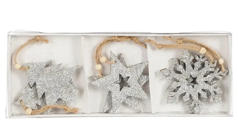 Набор украшений на елку: снежинки – 2 шт., звезды – 2 шт., елки – 2 шт.