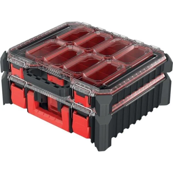 Высокий органайзер KCX454015S. Предлагает еще больше возможностей для организации благодаря 4 съемным контейнерам и 7 съемным перегородкам. Вы можете создавать отсеки разного размера, идеально подходящие для хранения более крупных инструментов, проводов, рыболовных снастей или любых других предметов, требующих индивидуального подхода.