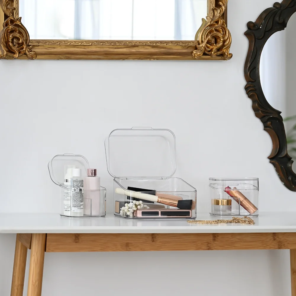 В наборе 1 больше (171х121х108 мм) и 2 меньших (107х77х91 мм) органайзера. По желанию их можно компактно установить вместе или отдельно. Такие органайзеры можно использовать для хранения косметики, средств гигиены, швейной фурнитуры, канцелярской утвари и других мелочей.