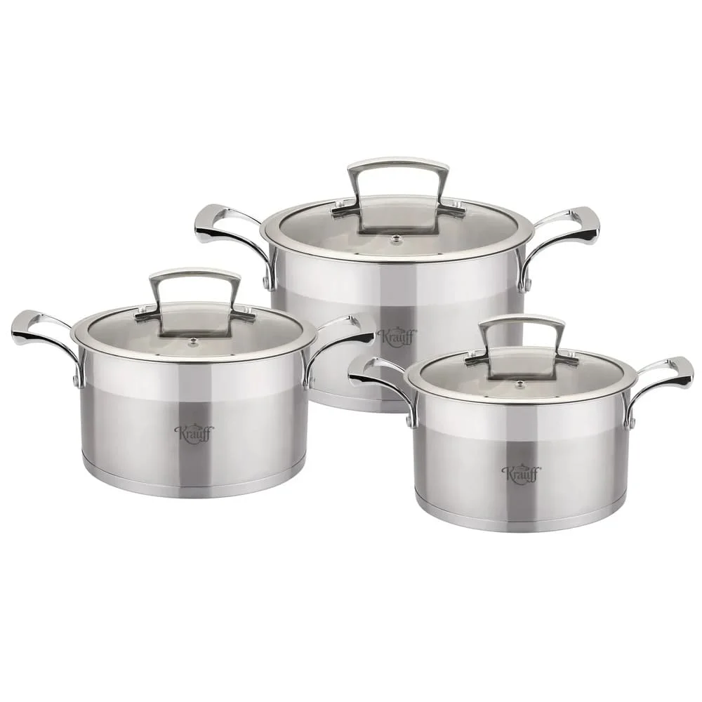 Это надежный и практичный комплект, созданный для тех, кто ценит качество и удобство в процессе приготовления пищи. В него входят три кастрюли разного объема, каждая из которых оснащена прочной термостойкой стеклянной крышкой с паровыпуском. Такой набор позволяет готовить широкий спектр блюд – от легких супов и соусов до более сложных гарниров и мясных рецептов.