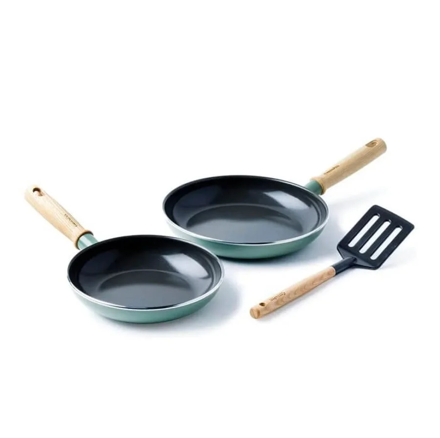 Особенности набора сковородок GreenPan Mayflower, 20и24 см и лопатка (CC001570-001)