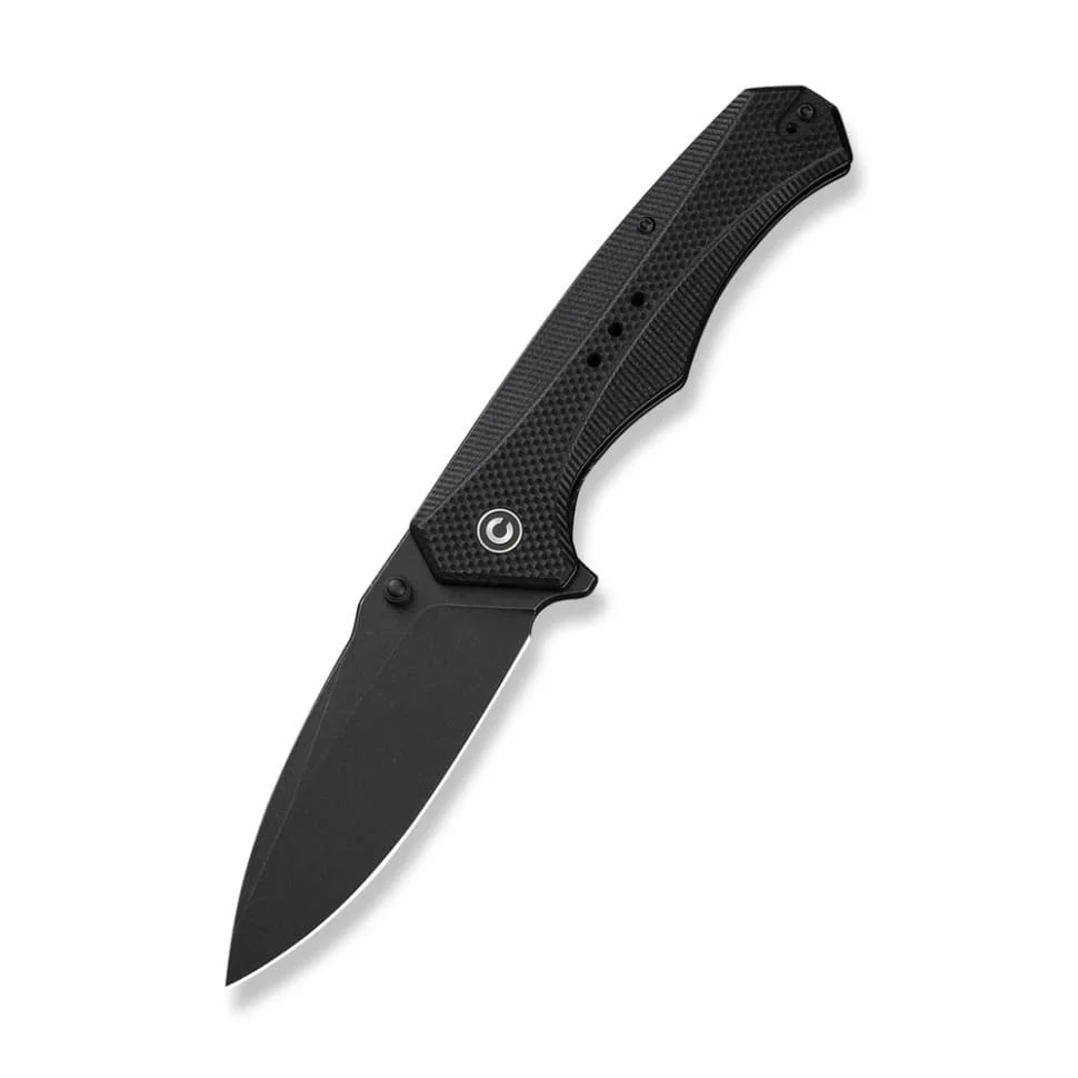 Материал клинка – шведская нержавеющая сталь Sandvik 14C28N; твердость стали – 57-59 HRC; метод обработки клинка – галтовка с черным покрытием; на обухе есть упор для большого пальца; осевой узел с подшипниками из керамики; замок Liner Lock; материал накладок на рукояти – G10; двухпозиционная стальная клипса Tip-Up для скрытого ношения