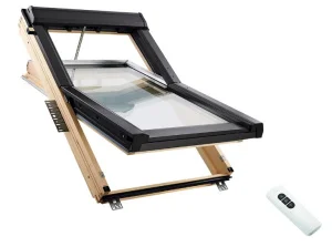 Это удобное в управлении окно, которое характеризуется высокими энергосберегающими характеристиками и простым монтажом. Совместимо с крышами у которых минимальный угол наклона составляет 15-90 градусов. За счет возможности управления дистанционно при помощи пульта, подходят для установки, в том числе с высокими потолками. Рассчитан на установку не только в современных настройках, но и при реконструкции старых зданий.