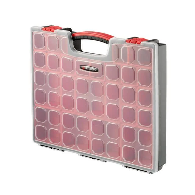 Вместительный органайзер с двумя надежными замками. Отдельные секции. Съемные лотки (секции) могут применятся как отдельные единицы для хранения мелких деталей вне органайзера.