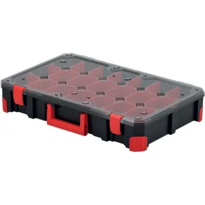 - Внутри органайзера имеет 20 съемных перегородок, которые вы можете располагать так, как вам удобно. Создавайте отсеки нужного размера для шурупов, гаек, болтов, сверл, битов, канцелярских принадлежностей или любых других мелочей. Максимальная гибкость в организации – залог того, что каждый предмет найдет свое место.
