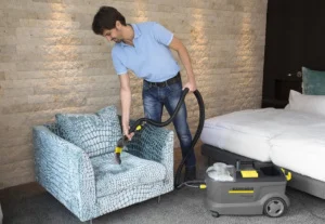 Профессиональный моющий пылесос Karcher Puzzi 10/1 предназначен для глубокой очистки текстильных поверхностей, таких как ковры и мягкая мебель. Благодаря давлению распыления в 1 бар и расходу моющего раствора 1 л/мин, он эффективно удаляет загрязнения, обеспечивая быстрое высыхание очищенных поверхностей.