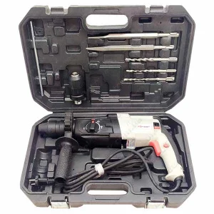 производительный инструмент массой 3,5кг используется для бурения отверстий в твердых материалах, таких как дерево, бетон, металлические конструкции и т.д., а также для других строительных работ. Перфоратор оснащен коллекторным двигателем мощностью 1500Вт, обеспечивающим скорость вращения сверла в 1250об/мин. Подключается к бытовой сети напряжением 220В и частотой 50Гц.