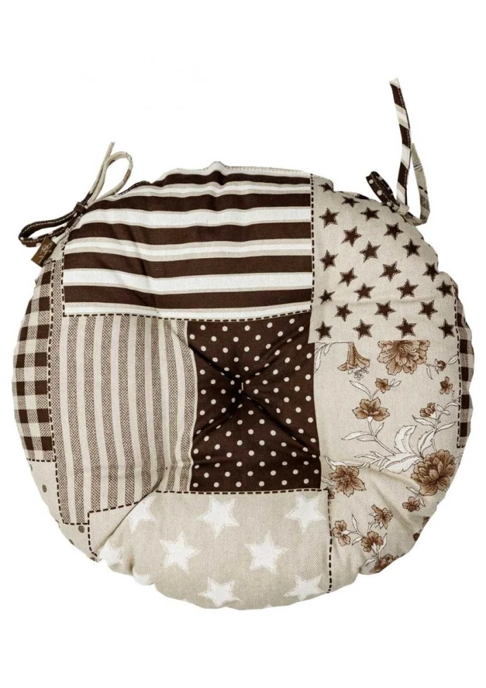 Подушка на стул Прованс Хозяйка Печворк коричневый d40см (031620)