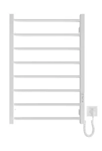 Электрический полотенцесушитель Hygge Family Leeds 770×530×85 мм - это практичное решение для ванной комнаты, сочетающее современный дизайн и эффективный нагрев. Модель выполнена из прочной углеродистой стали с антикоррозийной обработкой, что обеспечивает устойчивость к влаге и длительный срок службы. Белое матовое покрытие придаёт устройству аккуратный внешний вид и позволяет гармонично вписать его в светлые интерьеры. Конструкция включает 8 горизонтальных ребер из круглой трубы и боковые стойки квадратного профиля, что обеспечивает равномерное распределение тепла по всей поверхности. Размеры 770×530×85 мм позволяют разместить несколько полотенец одновременно, а настенный монтаж экономит пространство и делает использование максимально удобным. Отдельным преимуществом является наличие комплекта для скрытого подключения, благодаря которому проводка не нарушает эстетики помещения. Вес устройства составляет всего 3,94 кг, что упрощает установку и не создает лишней нагрузки на стену.