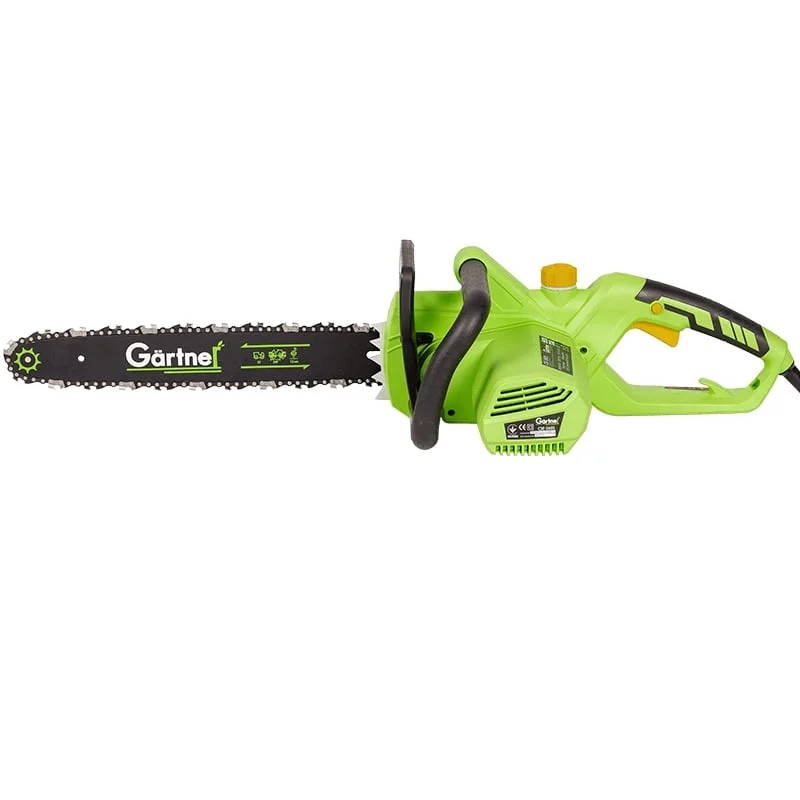 Сетевая цепная пила Gartner CSE-2605 (846803) - это мощный электрический инструмент, предназначенный для распила древесины, обрезки веток и заготовки дров в бытовых условиях. Модель сочетает высокую производительность, удобство эксплуатации и надежную систему безопасности. Благодаря работе от электросети пила обеспечивает стабильную мощность и не требует заправки топливом или подзарядки аккумуляторов, что делает её практичным решением для использования в частном хозяйстве, на даче или при строительных работах. Инструмент оснащён мощным электродвигателем на 2600 Вт, который обеспечивает высокую эффективность при распиле древесины различной плотности. Пила комплектуется направляющей шиной длиной 406 мм (16 дюймов), что позволяет работать с ветками, досками и бревнами среднего диаметра. Скорость движения цепи составляет 13 м/с, благодаря чему достигается быстрый и аккуратный рез.