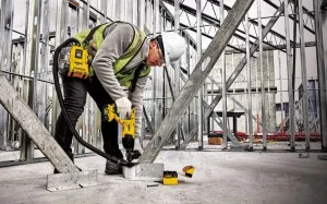 Прибор рассчитан на сухую уборку. Гибкий шланг длинной 1 м и диаметром 26 мм имеет антистатические свойства. Корпус и контейнер из пластика. Основные параметры пылесоса строительного аккумуляторного DeWALT DWH161N: