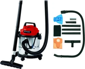 Прибор от немецкого бренда подходит для бытового применения. С пылесосом строительным Einhell Classic TC-VC 1812 S 12л (2342370) вы наведете порядок в доме, автомобиле, подсобных помещениях, мастерской, на небольшой строительной площадке. Максимальная мощность всасывания достигает 180 мбар. Корпус изготовлен из прочного ударостойкого пластика, а бак для отходов из нержавеющей стали. Всасывающий шланг гибкий и прочный длиной 1,5 м. Уровень шума во время работы достигает 78 дБ.